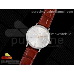V7공장 IWC 포르토피노 실버다이얼 다이아베젤 브라운가죽 _ Portofino 37mm SS V7F 11 Best Edition White Dial Diamonds Bezel on Brown Leather Strap A2892 > IWC I 포르토피노