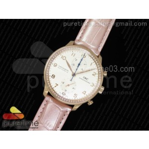 • ZF공장 IWC 포루투기저 3714 화이트다이얼 다이아몬드베젤 로즈골드 _ 가죽 Portuguese Chrono IW3714 RG ZF White Dial Diamonds Inner Bezel on 6 Colors Leather Strap A7750 (Same Thickness as Genuine)
