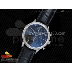 • ZF공장 IWC 포르투기저 371447 크로노 다이아몬드베젤 _ 가죽 Portuguese Chrono IW371447 ZF 1_1 Best Edition Diamonds Bezel on Black Leather Strap A7750 (Same Thickness as Genuine)