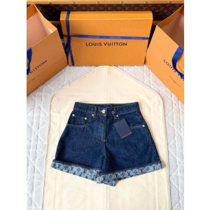(AR 공장) 루이비통 25FW 다크 블루 로고 커프 데님 반바지