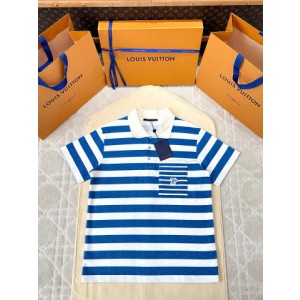 (AR 공장) 루이비통 25FW 자카드 로고 블루 앤 화이트 스트라이프 폴로 반팔