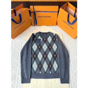 (AR 공장) 루이비통 25FW 자카드 컬러블록 다이아몬드 체크 라운드넥 니트 스웨터