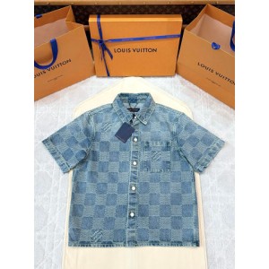 (AR 공장) 루이비통 25SS 체커보드 펄 버튼 데님 반팔
