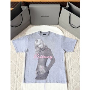 (AR 공장) 발렌시아가 25SS 브리트니 포트레이트 프린트 핫 다이아몬드 워싱 반팔