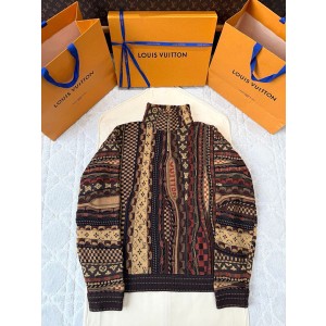 (AR 공장) 루이비통 25FW 레터 자카드 컬러블록 니트 레트로 올드머니 스탠드 칼라 스웨터 재킷