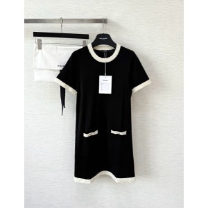 (AR 공장) 샤넬 25FW 핸디크래프트 시리즈 클래식 블랙 앤 화이트 콘트라스트 울 드레스