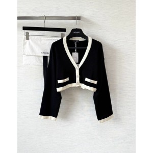 (AR 공장) 샤넬 25FW 핸디크래프트 시리즈 클래식 블랙 앤 화이트 콘트라스트 울 트림 크롭 카디건