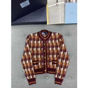 (TURBO공장) 프라다 워스티드 울 리브 니트 스웨터 재킷